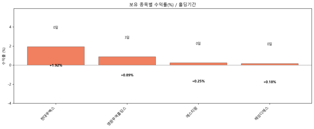 뭐 나쁘지 않지만, 오늘 워낙 손절한 종목이 많아서 썩 기분이 좋진 않다. 아래에 적을 추세추종 원칙을 대거 수정할 계획이다.