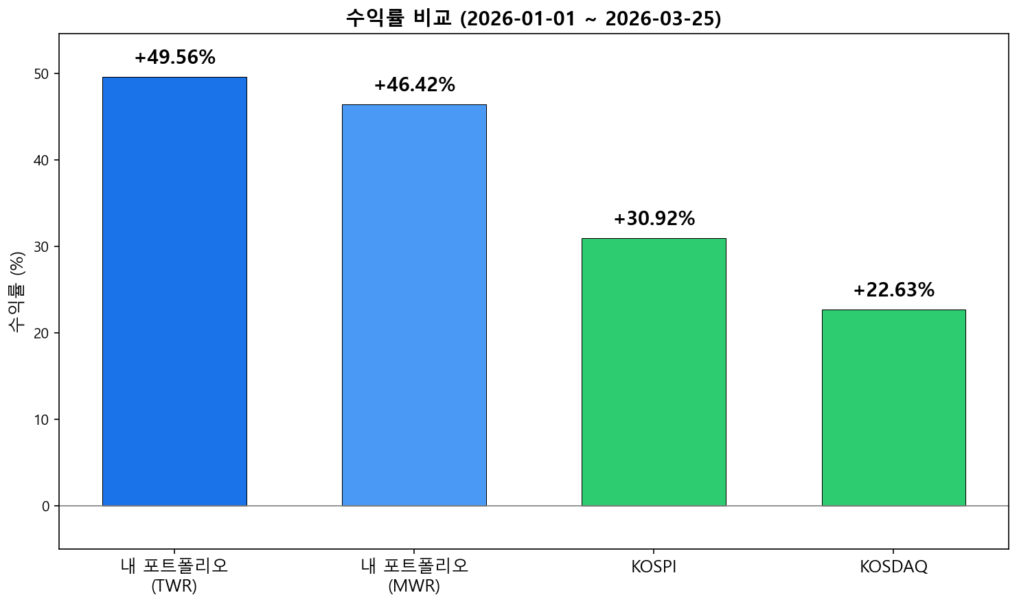 광통신으로의 집중 덕분에 포트 수익률이 크게 좋아졌다. 다만 항상 이렇게 시장의 주도섹터에 자산을 집중시킬 순 없을 것이다. 지금을 즐기되, 자만하지 말자.