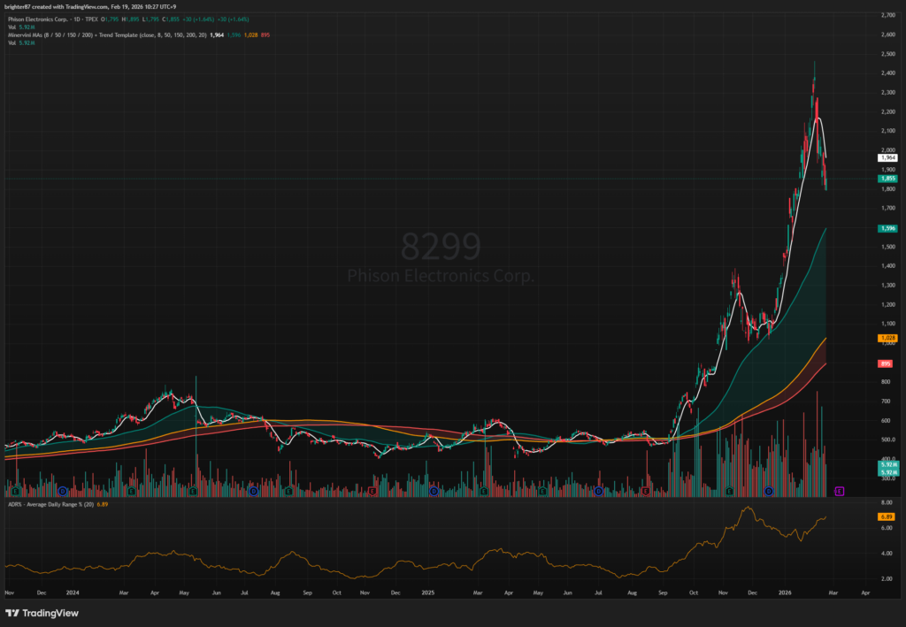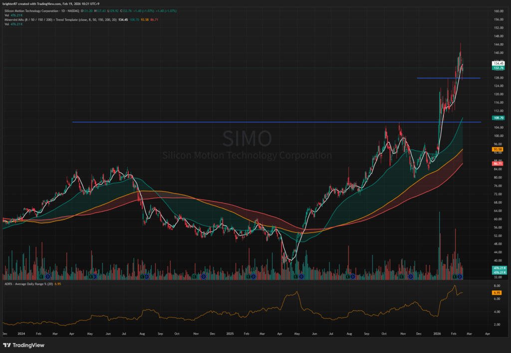 SSD에 대한 익스포져가 높은 기업은 SNDK, SIMO, 그리고 대만의 파이슨, 국장의 파두가 있다. 샌디스크와 파두의 상승을 보면 이미 신호탄은 쏘아졌다고 생각한다. 그러나 대체로 미국 시장에 상장된 종목이 더 많이 오래 시세가 잘 나오지 않던가. 그래서 이런 단순한 아이디어로 SIMO의 추세추종을 해보기로 했다.