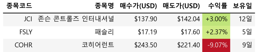 LITE에 비해 한참 언더포펌하던 COHR를 매도했다. FSLY는 포트폴리오에서의 1% 미만의 작은 비중으로 테스트 삼아 들어가봤던 종목이라 매도했고, JCI는 AI 익스포져가 적다는 생각에 적당히 매도했다. 사실은 다 핑계고 SIMO를 매수하기 위한 자금 확보다.