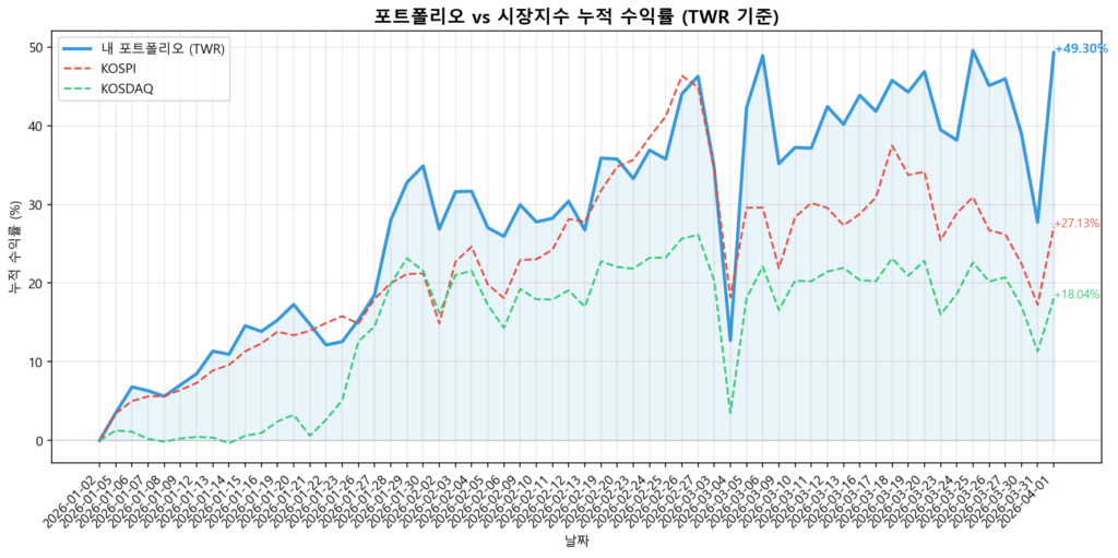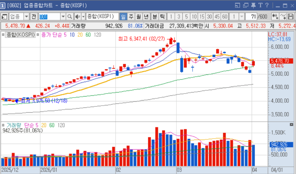 오늘 코스피가 8.44% 상승, 코스닥이 6.06% 상승했다. 엄청난 반등이다. 정말 제대로 된 반등이었다. 트럼프가 전쟁이 곧 끝날 것이라는 말에, 그리고 이란 대통령이 종전에 대해 “미국과 이스라엘이 공격을 멈추면 종전할 수도 있다”는 이야기에 시장은 환호했다. 앞으로도 순탄하진 않겠지만 점진적으로 상승세를 보여줄 거라 생각한다. 높았던 전고점을 돌파하려는 지는 아무도 모른다. 그러나 적어도 한동안은 지수가 상승해줄 것 같다.