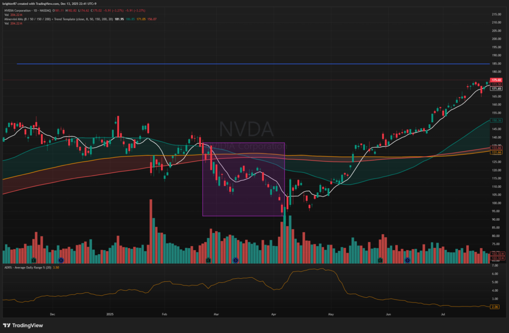 NVDA를 예로 드는 것이 적절한 것이진 모르겠지만, AI테마의 대장주이기 때문에 의미가 있을 거라 본다. 2025년 2월 24일, 마이크로소프트는 데이터센터 임대 계약을 일부 취소하겠다고 발표했다. 2025년 12월의 지금 시점에서 보면, 결국 주가는 많이 올랐다. 아마 2026년 12월의 시점에서도 비슷하지 않을까 싶다. 그런데 시간 가치가 소중한 나에겐 조정의 폭이 얼마나 클 지 예상해보는 것이 중요하다. 조정이 6개월 지속될 것이라면 그동안 다른 섹터를 들고 있는 것이 낫기 때문이다.