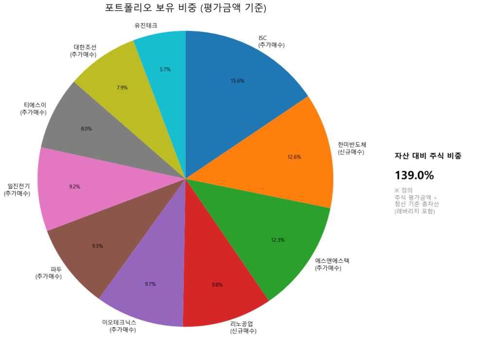 LNG선에 대한 매력도 상승으로 대한조선도 추가로 매수하여 포트폴리오를 소수 종목에 집중하게 되었다. 그러나 -7%를 1R로 설정하는 것과 MAX 2% RULE은 동일하다.