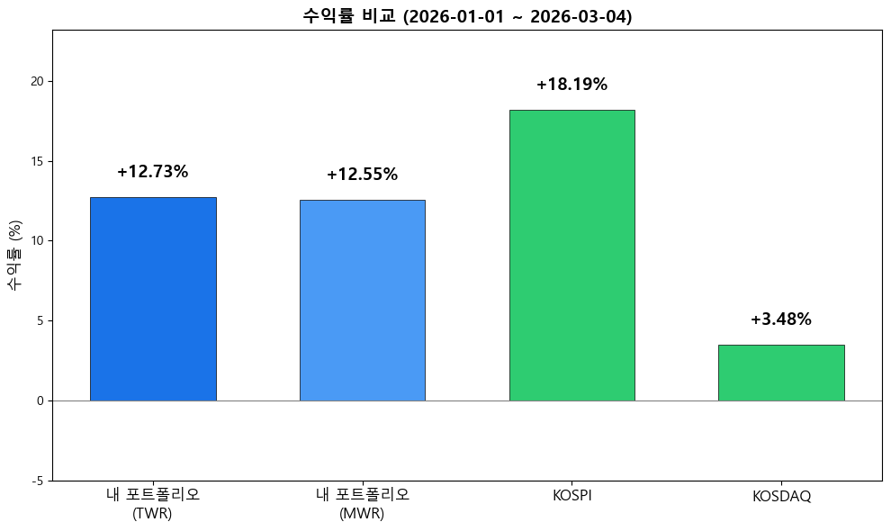 올해의 수익률이다. 엄청나게 내려왔다. 아래 차트를 보면, 어제 오늘의 하락이 어마어마했다는 걸 알 수 있다.
