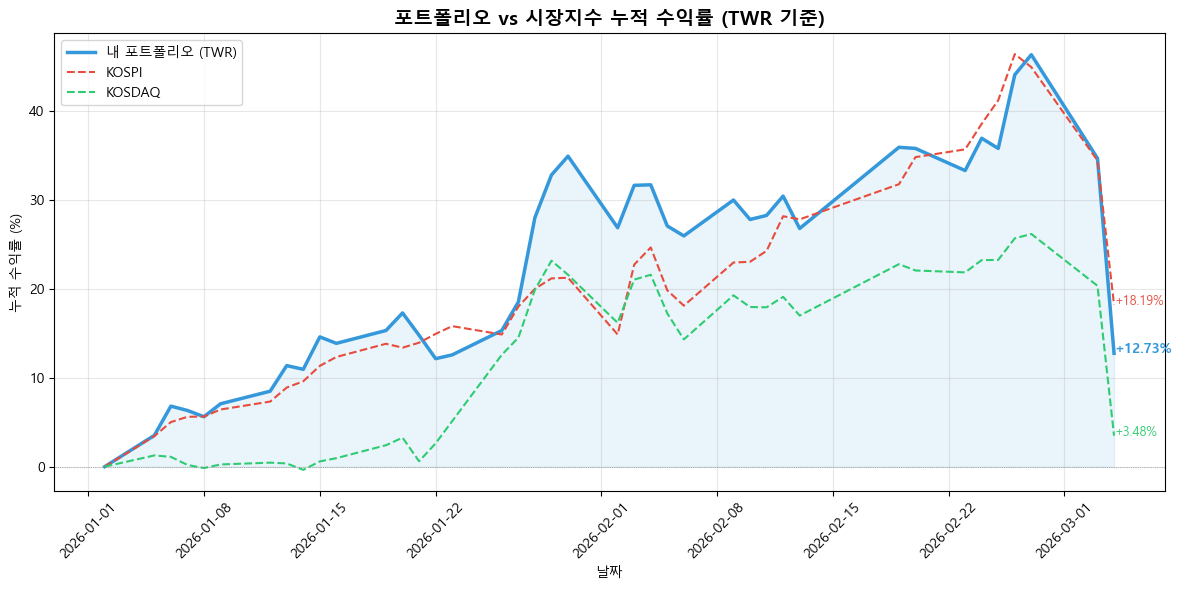 장중에 매수하여 -7%에 아슬아슬한 종목들이 많다. 평가손익이 엉망이다. 그러나 우선은 내일 장 마감까지 (미장의 폭락이 없다면) 홀딩해볼 계획이다. 오늘의 하락으로 많은 고수들이 포트 자산이 줄어들었다고 한탄하고 있다. 고수 뿐만 아니라 초보 투자자들도 마찬가지다. 그런데 이 고수와 초보를 가르는 핵심은 반등 시 내 포트의 종목들이 오르는지 여부다. 지금은 모두가 하락하여 사람들은 비교적 안도하고 있는 편이다. 나도 그렇다. 그런데 지수가 반등하는데 내 종목이 오르지 않는다면 그때부터 진짜 FOMO가 시작될 것이다.