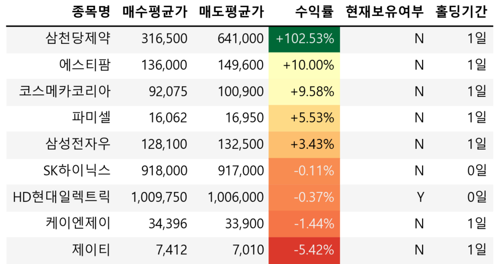• 매수는 무조건 장 마감 이후에 하는 것으로 변경.