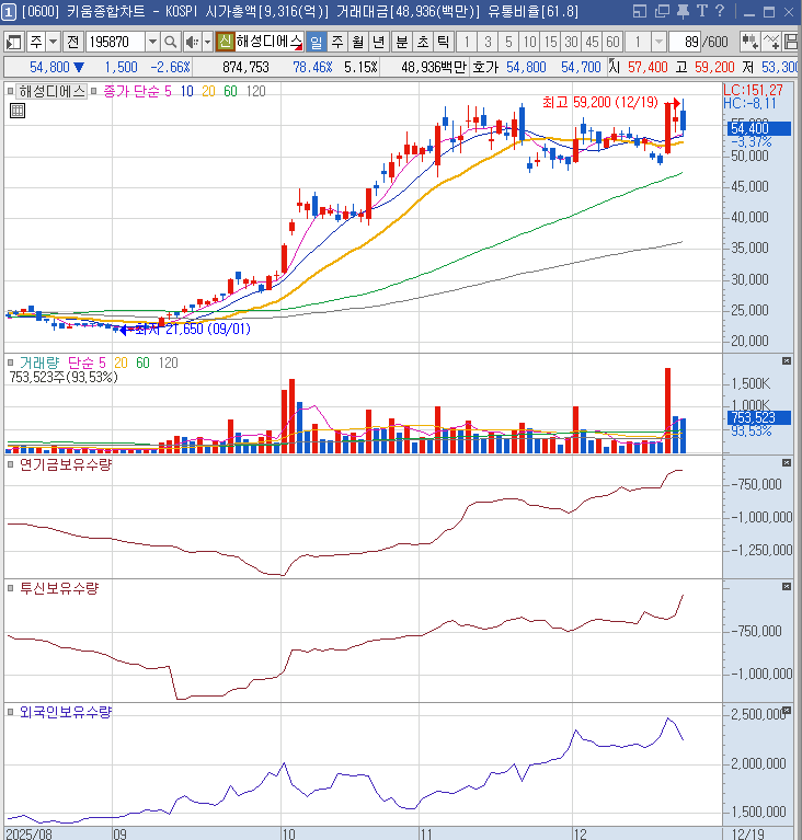 내 포트의 1/4을 차지하고 있는 해성디에스. 먼저 장대양봉이 만들어진 타이밍은 애널리스트 리포트 덕분이다. 때마침 삼전과 하이닉스가 크게 반등한 날이었고 애널리스트 리포트가 그날 공개됐다. 주가는 19.27% 상승하며 신고가를 갱신했고, 사실 나는 다음 날, 그리고 그 다음 날 분할로 매수했다. 문제는 비중조절이다. 나는 최대비중인 계좌의 1/4를 단 번에 채워버렸다. 그리고 지금은 -4.28% 손실 중이다. 문제는 뭐였을까?