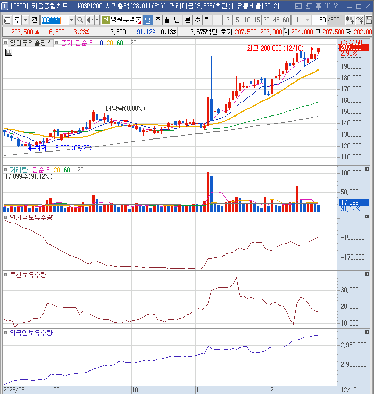 이 종목은 펀더멘털도 나쁘지 않고, 차트도 좋은 종목이다. 그나마 가장 잘 매수했다. 전고점을 넘고난 뒤 풀백, 그리고 재돌파 기대감에 매수한 종목이다. 다만 너무 빠른 불타기로 수익률이 조금 희석되었고 20만원이라는 전고점을 돌파하는 모습에 매수하긴 했으나 조금 비싼 가격에 매수한 건 아닌지, 그리고 펀더멘털이 엄청 훌륭한 건 아니라 약간 걱정되지만, 일단 차트를 믿고 홀딩해보려 한다.
