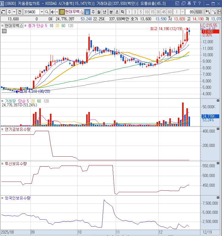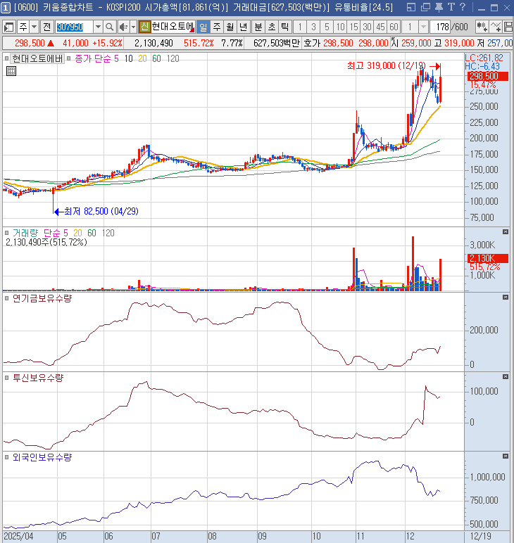 원칙을 잘 지켰는가에 대한 기준에 있어서 현대무벡스도 꽤 괜찮았다고 본다. 전고점 돌파 시 잘 매수했고, 테마도 강했다. 실적 및 펀더멘털도 강한 종목이면서 차트도 좋았다. 아마, 현대오토에버도 전고점을 돌파해준다면 월요일 매수할 법한 상황이다. 차트상으로는 굉장히 많이 오른 것처럼 보이지만 최근 저점 대비 고작 2배 올랐을 뿐이니까.