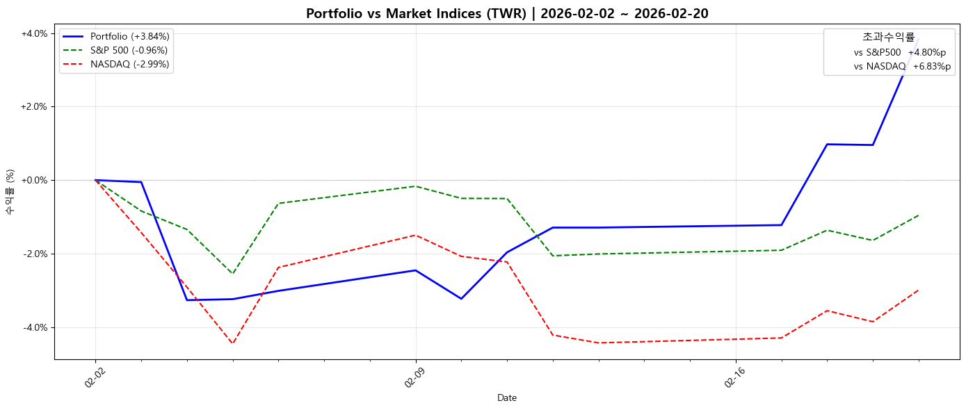 강한 섹터의 종목들도 포트를 구성했고, 짧은 기간이지만 시장을 아웃퍼폼하고 있다. 미장도 국장에서와 같이 메가트렌드(AI)에 밀접하게 관련있는 섹터에서 신고가 종목이 나왔을 때 적절한 타이밍에 매수하는 전략이 잘 통할 것 같다. 적어도 아직까지는…2