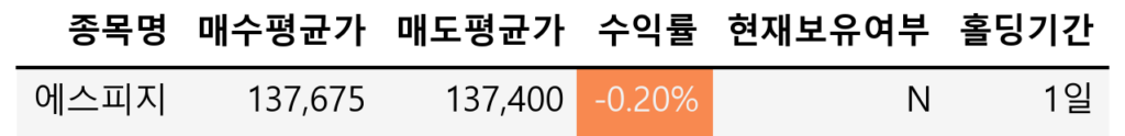 오늘 오전, 매도세가 너무 강해 에스피지를 본전 쯤에서 매도했다. 결과적으로 오늘 장 마감 후 반등이 나오곤 있지만 원칙대로 잘 실행했다고 생각한다. 게다가 매매도 적었다. 뇌동매매가 많지 않았던 덕이다.
