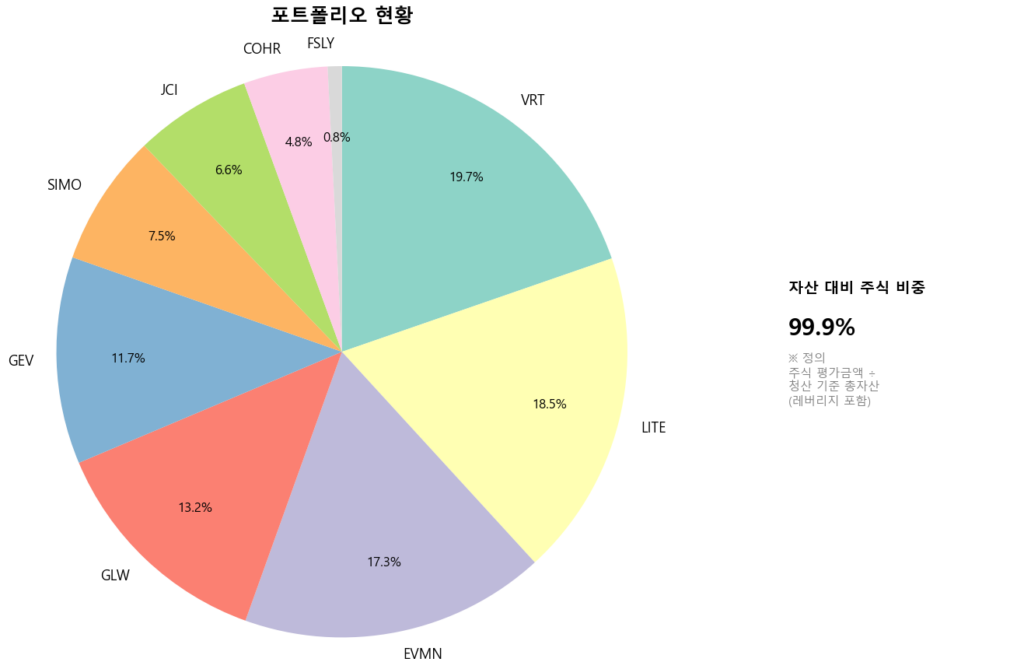 추세추종이라면서 COHR는 아직 매도하지 않고 있다. 비중이 적긴 한데, 그래도 LITE 주가가 저렇게 좋은데 COHR만 안가는 게 조금 이해가 가지 않고, 모니터링 할 목적이라는 핑계로 가지고 있는데 곧 손절해야 할 수도 있겠다.