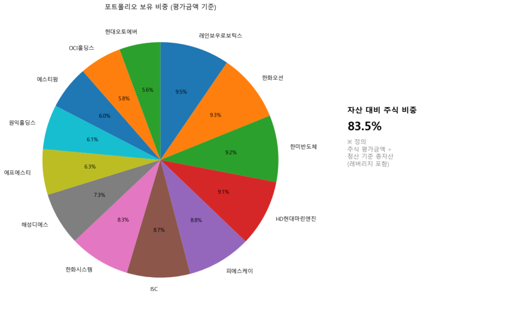 새롭게 편입된 종목은 없다. 현대무벡스는 오늘 매도하여 빠져있다. 해성디에스의 비중이 줄었다.