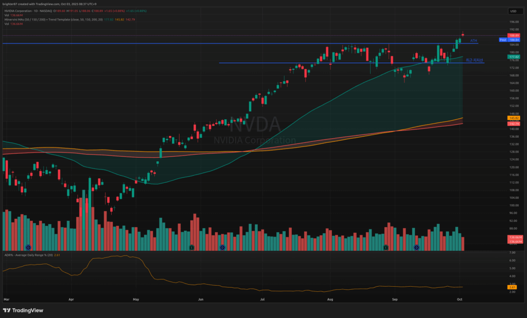 미너비니 스크리닝 통과 종목 NVDA 조정 후 신고가 돌파, 그리고 지지...