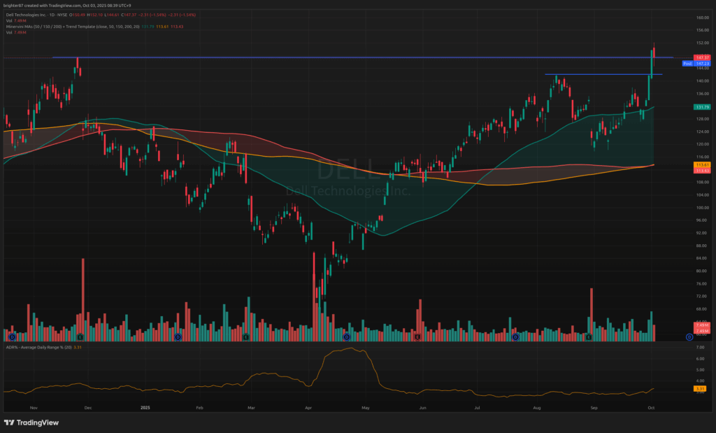 AI 서버 수요 증가 기대감으로 상승을 시작한 DELL. 이런거 보면 정말 기술적 분석이라는 것이 기가 막히다. 전고점을 어떻게든 돌파하긴 했으나 전고점의 매물이 많아 다시 딱 전고점 수준으로 돌아왔다. 아침에 봤으면 매수하는 건데, 포스팅하는 지금에서야 보게 됨.