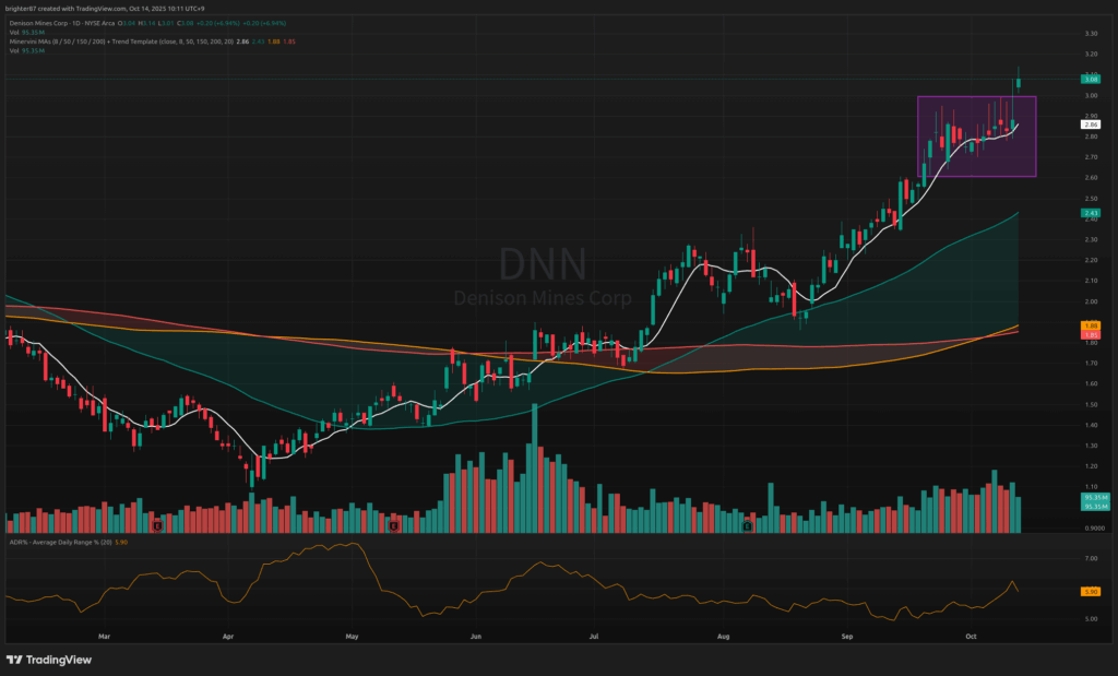 양자컴퓨팅 관련주들도 어제 동반 상승했다. 특히 QBTS가 눈에 띄었는데 박스권 상단을 돌파하여 장을 마쳤기 때문이다. 펀더멘털은 형편 없어 큰 비중으로 매수는 어렵겠지만, 박스권 상단(지지선)까지 내려온다면 -3% 정도 손절 생각하고 매수해 볼 법 하다.