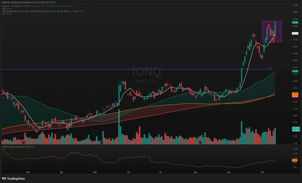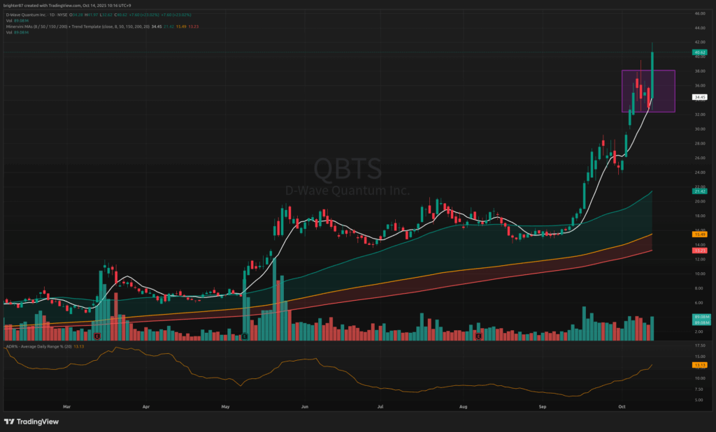 IONQ가 대장주 같지만 사실은 모른다. IONQ는 심지어 아직 박스권을 돌파하지 못했다. 이러면 단기적으로는 매도세 때문에 QBTS보다 상승 강도가 약할 수 밖에 없다.