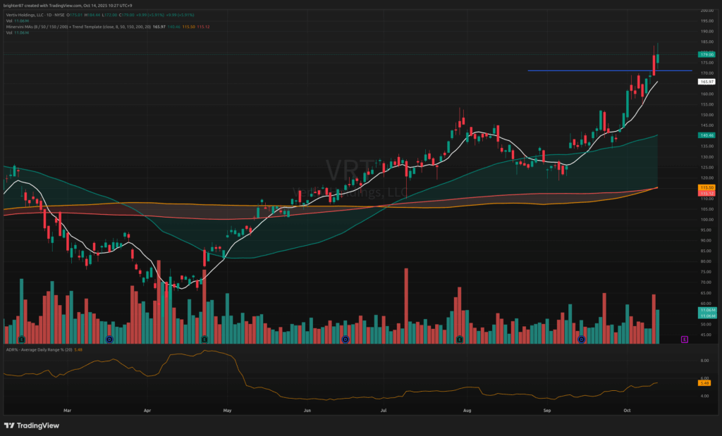 펀더멘털도 아주 좋고, 테마도 아주 좋은 VRT. 차트도 꽤 좋다. 만약 1-2일 조정 받는다면 반드시 매수할 종목.