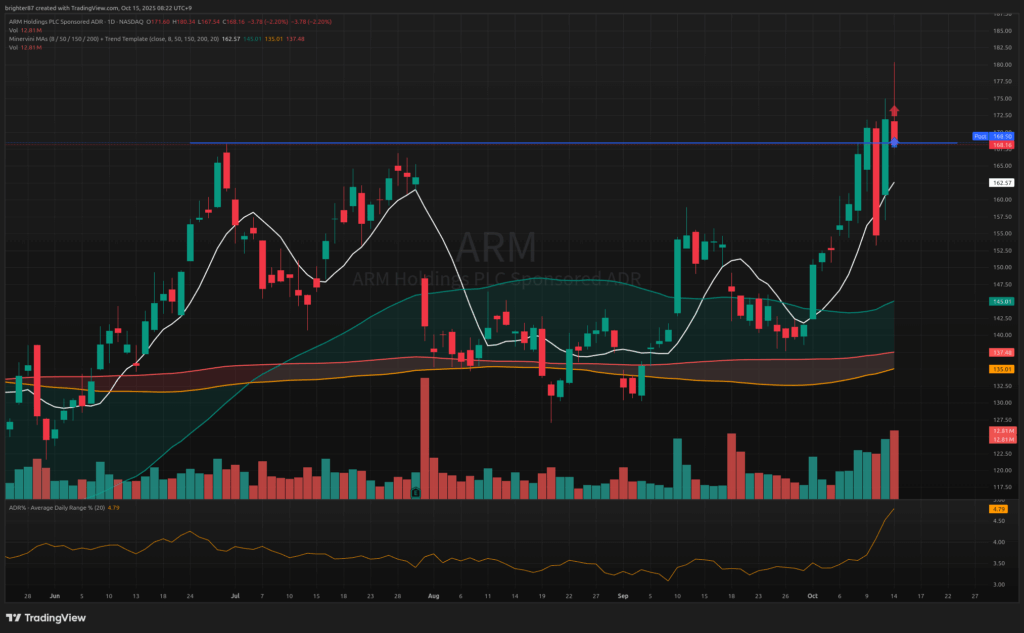 물론 ARM처럼 과도한 우려 평가에 앞으로 1-2주 간 반등할 지도 모른다. 그러나 반등하지 못할 확률과 반등하는 동안 필요한 기회비용을 고려하면 우선 피하고, 당장 1주 내 크게 상승할 종목에 집중하는 게 낫다고 생각한다.