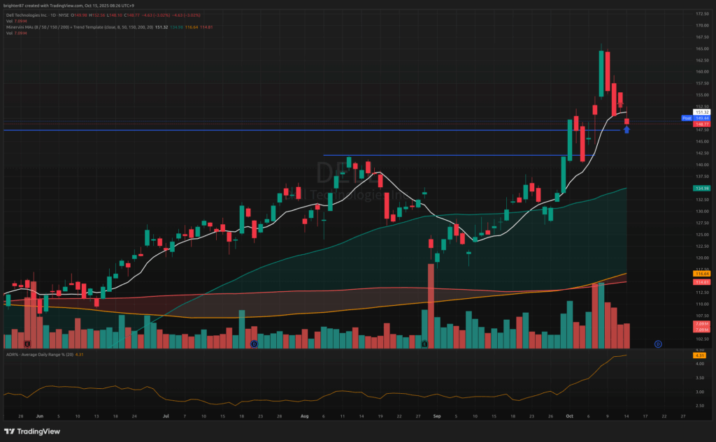 DELL도 ARM처럼 애정이 있는 종목인데, 역시 주식은 애정으로 하는 게 아니다. 성장성의 우려감이 혼조하는 가운데 DELL도 최근의 지지선 이하로 하락했다. -4.05% 손절로 마감.