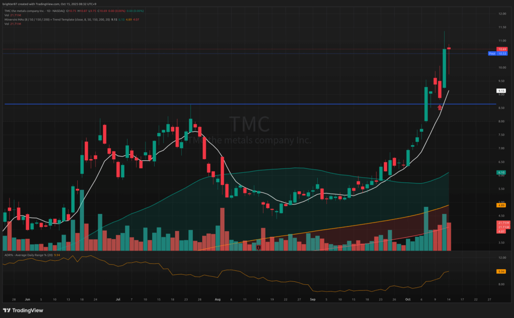 TMC도 마찬가지. 다만, 테마의 대장주는 아니기 때문에 위아래로 변동성이 클 수 있다. 게다가 펀더멘털도 불분명한 스타트업 수준의 기업. 이런 기업이 또 한 번 오를 때 시원하게 올라주는 경향이 있기 때문에 계속 홀딩한다. +23.31% 수익 중.
