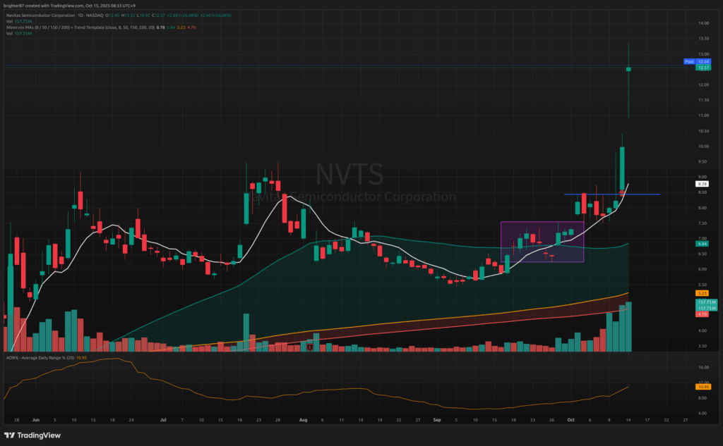 엔비디아와의 협력 소식은 진짜였다. 월요일 장 마감 후 NVDA와의 협력 소식이 구체화되며 애프터마켓에서 30% 급등했던 NVTS. 장이 좋지 않아 +26.08%의 상승으로 장을 마쳤지만, 다시 추가 상승할 것으로 기대되는 종목이다. +45.20% 수익 중.