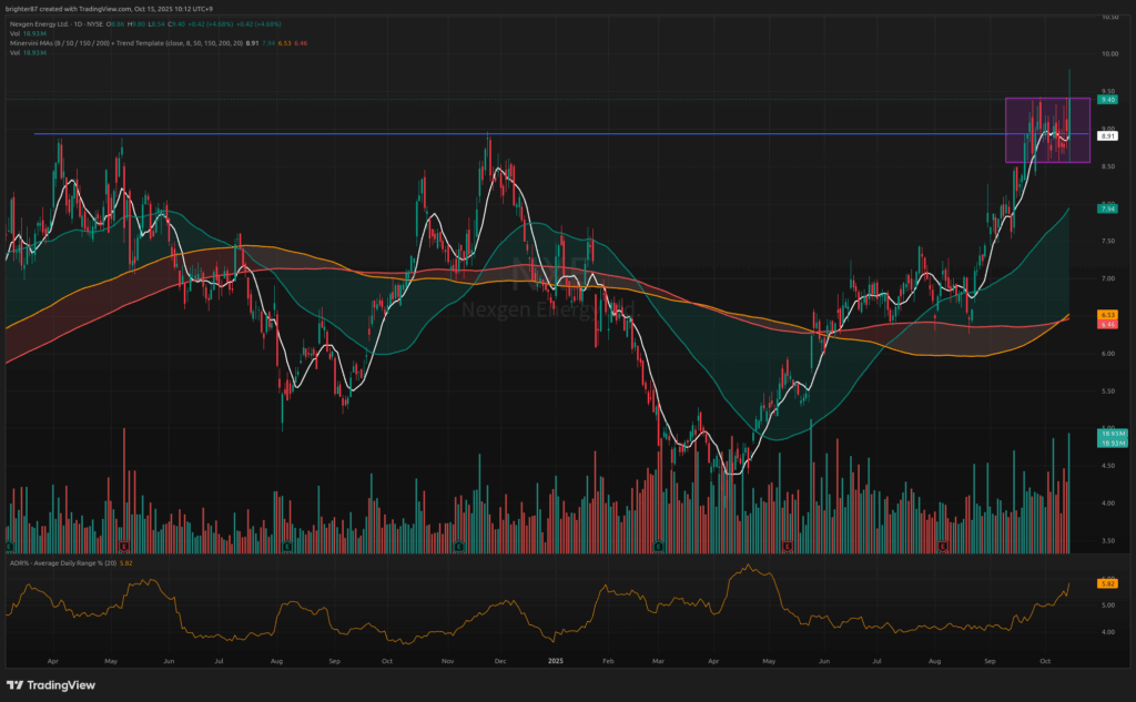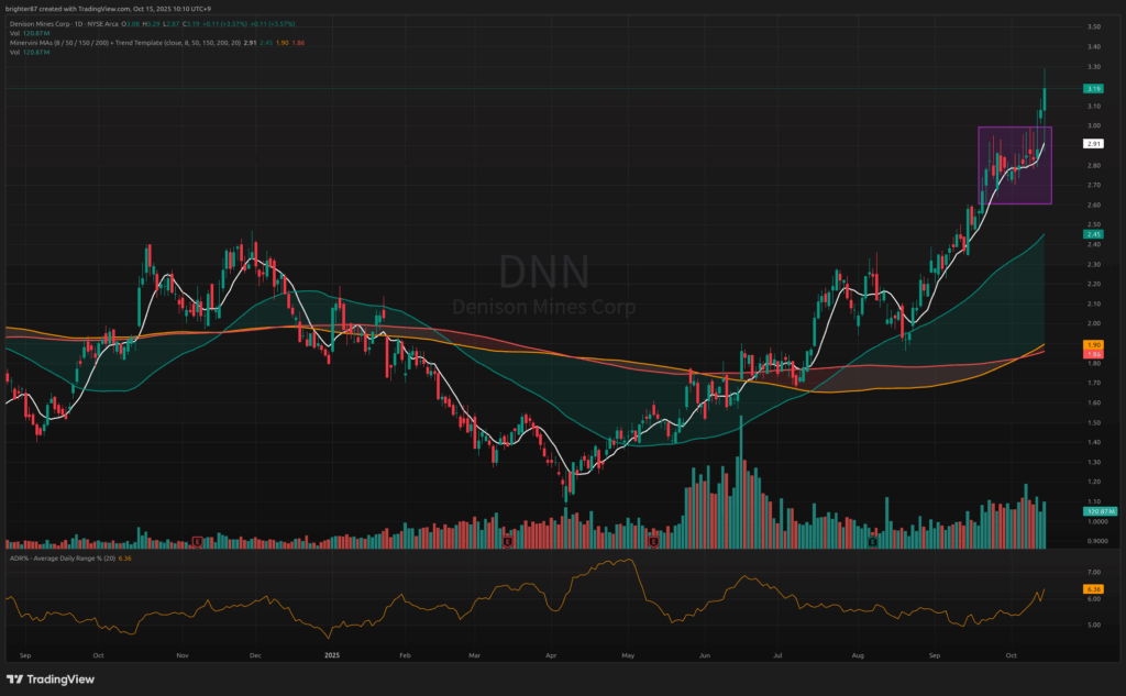캐나다의 우라늄 탐사 기업. DNN도 그렇고 NXE도 그렇고, 우라늄 기업들의 주가가 꿈틀대고 있다. 오늘 아침 일찍 봤으면 어쩌면 매수했을 종목. 단, 리스크는 오히려 DNN 때문. DNN가 박스권을 돌파했는데 NXE는 아직 약간 애매하다는 것은 시장에서 매력을 조금 덜 느낀다는 뜻.